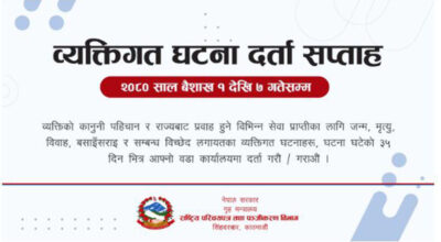 काठमाडौँ। जिल्ला प्रहरी परिसर काठमाडौँले एक महिना (चैत) को अवधिमा एक हजार १६६ वटा मुद्दा दर्ता गरेको छ । त्यसमा जघन्य अपराधका २१४, महिला, बालबालिका तथा ज्येष्ठ नागरिकसँग सम्बन्धित ४६, आर्थिक अपराधका ५६४ र अन्य[ ... ]