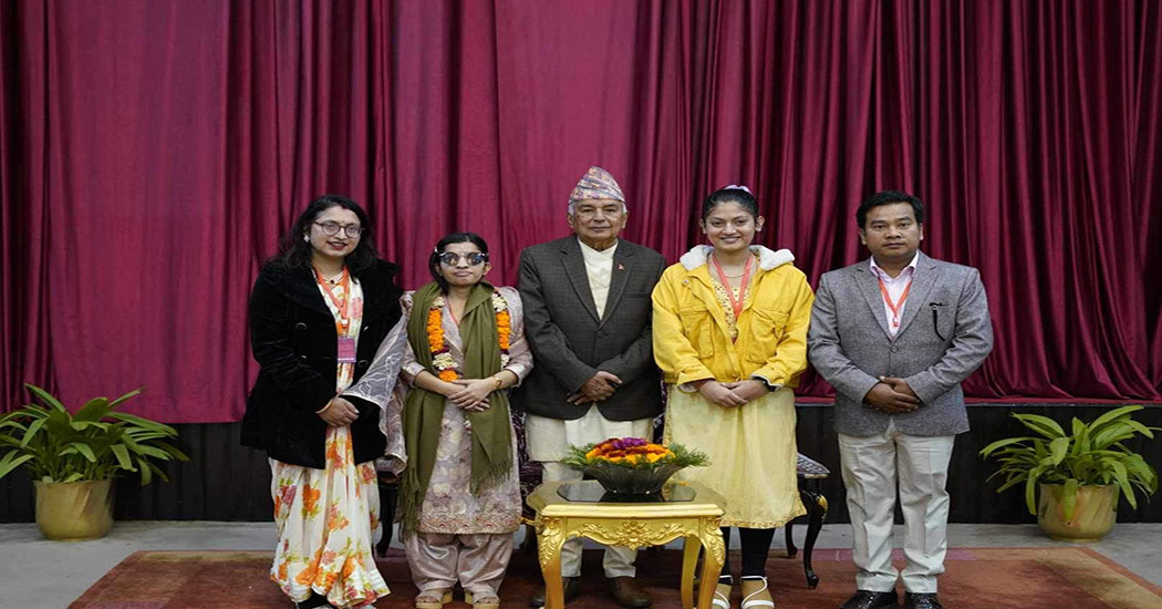 काठमाडौँ । राष्ट्रपति रामचन्द्र पौडेलले इण्डियन आइडलको उत्कृष्ट दश (टप टेन) मा पुग्न सफल नेपाली गायिका मेनुका पौडेललाई सम्मान गर्नुभएको छ । राष्ट्रपति पौडेलले सोमबार शीतल निवासमा एक समारोहबिच मेनुकालाई सम्मान गर्नुभएको हो ।