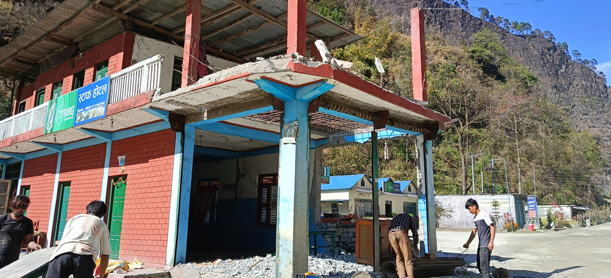 म्याग्दी । राष्ट्रिय गौरवको कालीगण्डकी करिडोर, बेनी–जोमसोम–कोरला सडक योजनाअन्तर्गत म्याग्दीको रघुगंगा गाउँपालिका–१ तिप्ल्याङमा सडकमा पर्ने घरटहरा हटाउन थालिएको छ । बेनी–जोमसोम–कोरला सडक योजनाले तिप्ल्याङस्थित सडक छेउछाउमा पर्ने घरटहराको क्षतिपूर्ति बुझ्न र संरचना यही फागुन २५ गतेभित्र हटाउन फागुन ११ गते १५ दिने सार्वजनिक सूचना जारी गरेको थियो ।