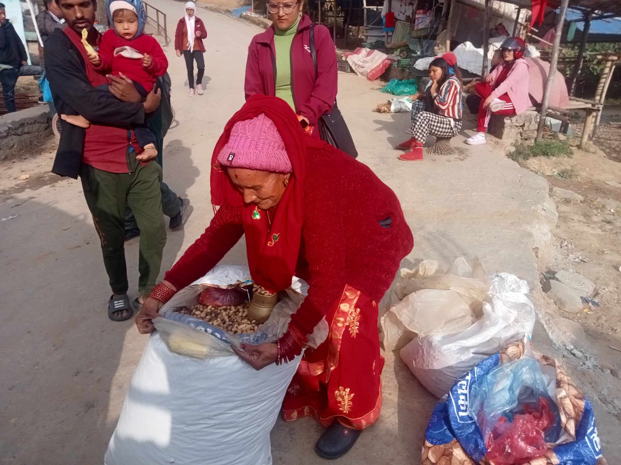 भोजपुर । ७२ वर्षको उमेरमा गाउँघरका हटियामा पुगेकी भोजपुरकी शिवमाया कार्कीको दैनिकीजस्तो बनेको छ। घरमा आराम गरेर बस्नुपर्ने उमेरमा उनी हाटबजारमा बदाम बेच्न पुग्ग्छिन्। बदामको व्यापार गरेर महिनामा १५ देखि २० रुपैयाँ हजारसम्म आम्दानी गर्दै आएको उनी बताउँछिन्। पैतालीस वर्षअघिदेखि बदामको व्यापार थालेकी उनी पनि बदाम उत्पादन हुने ठाउँमा उत्तिकै उत्साहका साथ व्यापार गर्न जान्छिन्।