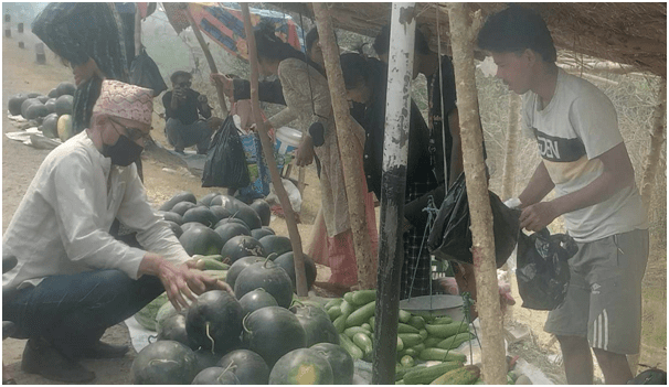 काठमाडौँ । पूर्वपश्चिम महेन्द्र राजमार्गको छेउमा साना छाप्रा छन् । छाप्रामा तर्बुजा ९खर्बुजा० राखेर कोही ग्राहक कुरिरहेका छन्भने कोही बिक्रीमा व्यस्त छन् । कञ्चनपुरको शुक्लाफाँटा नगरपालिका–११ पर्ने वनरा पुल वारिपारी तर्बुजा बेच्नेको भीड छ । महेन्द्र राजमार्ग भएर ओहोरदोहोर गर्ने यात्रुहरु यहाँ रोकिएर तर्बुजा खरीद गर्ने गर्छन् ।