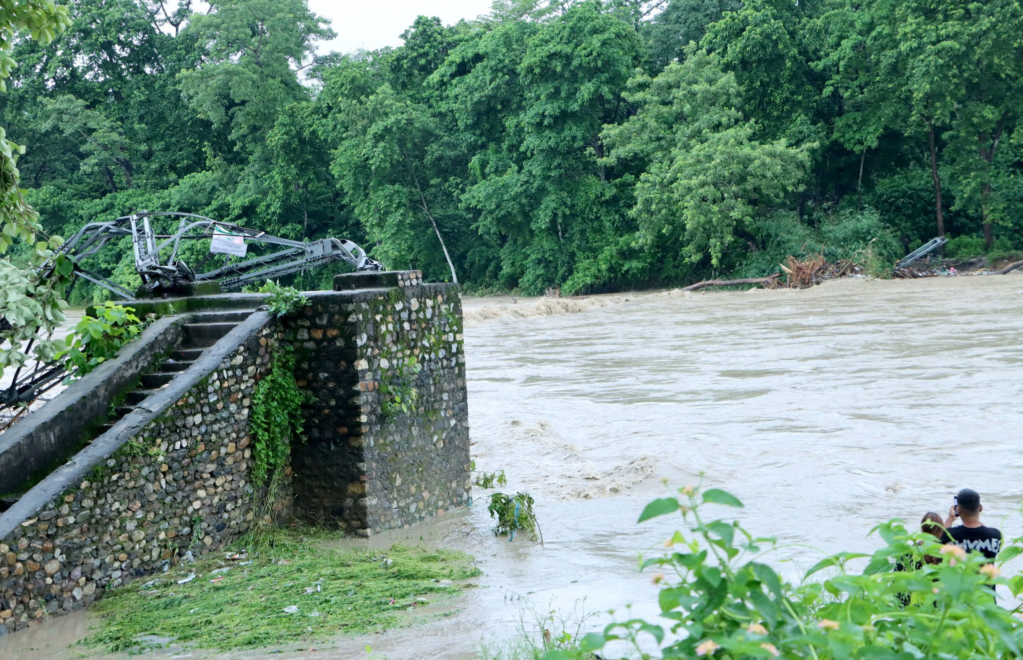 नारायणी नदीको बाढीले झोलुङ्गे पुल बगायो