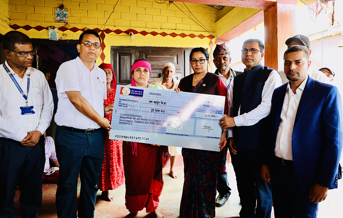 चितवन । भरतपुर महानगरपालिकाले गएको असार २८ गते नारायणगढ–मुग्लिन सडकअन्तर्गत भरतपुर महानगरपालिका–२९, सिमलतालमा बससँगै त्रिशूली नदीमा बगेर ज्यान गुमाएका सुदीप विकको परिवारलाई किरिया खर्च प्रदान गरेको छ । महानगरपालिकाका प्रमुख रेनु दाहालले बिहीबार ९हिजो० विकको परिवारलाई उक्त रकमको चेक हस्तान्तरण गरेकी हुन् ।