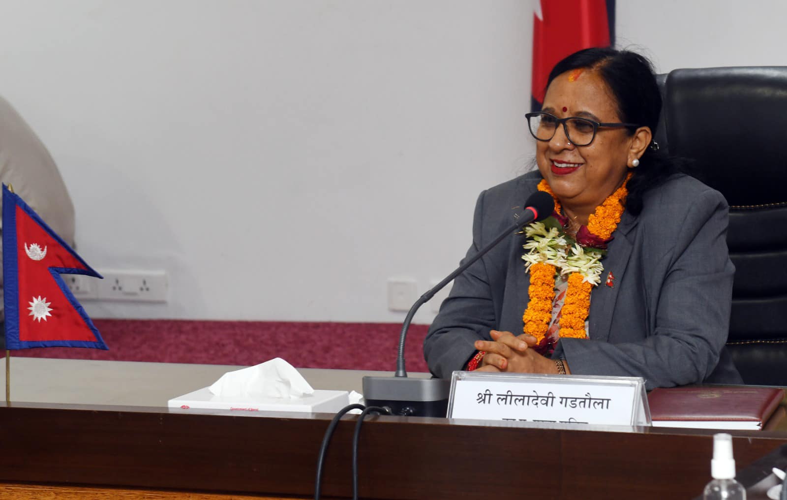 काठमाडौँ । सरकारले मुख्यसचिव नियुक्त गरेको छ । बिहीबार बसेको मन्त्रिपरिषद बैठकले लीलादेवी गड्तौलालाई मुख्य सचिव नियुक्त गरेको हो । सरकारको यो निर्णयसँगै गड्तौला नेपालको पहिलो महिला मुख्यसचिव बनेकी हुन् ।तत्कालीन मुख्यसचिव बैकुण्ठ अर्याल भ्रष्टाचार मुद्दामा निलम्बनमा परेपछि गत असारमा पुष्पकमल दाहाल प्रचण्ड नेतृत्वको सरकारले वरिष्ठ सचिव गड्तौलालाई निमित्त मुख्यसचिवको जिम्मेवारी दिएको थियो।
