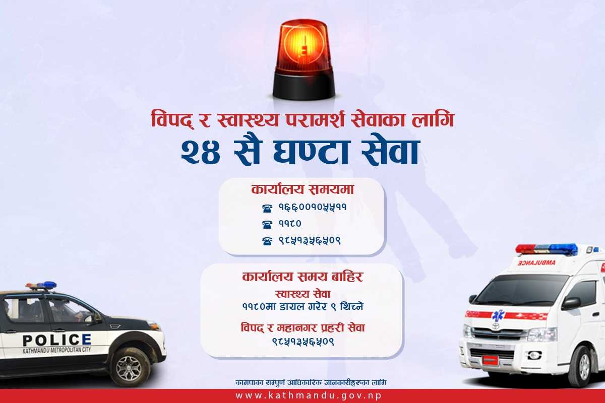 काठमाडौँ । काठमाडौँ महानगरपालिकाले विपदजन्य जोखिम र डेंगु हैजासहित महामारी व्यवस्थापनका लागि २४ घण्टे हटलाइन सेवा सुरु गरेको छ ।