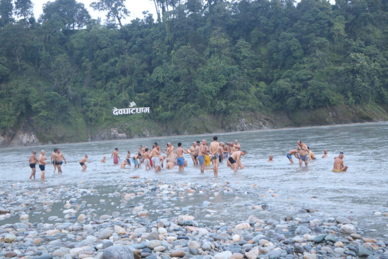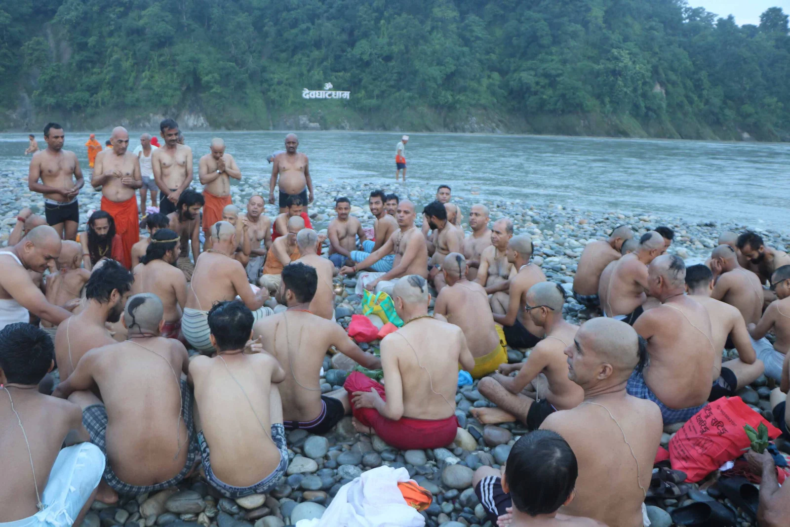 देवघाटमा श्रावणी स्नान गर्नेको घुइँचो
