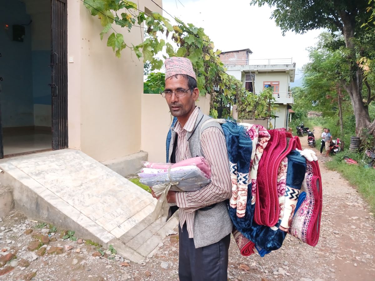 ‘अहिले छोराछोरी हुर्केबढेसँगै परिवारको खर्च बढ्दै गयो, थोरै खर्चले घरखर्च धान्न मुस्किल छ, व्यापार भने पहिलाको तुलनामा घट्दैछ, एक व्यक्तिको कमाइले जीविका चलाउन हम्मेहम्मे परेको छ, बाध्यताले गाउँगाउँमा राडीपाखी, गलैँचालगायतका कपडा बोकेर व्यापारमा हिँडेछु,’ उनले भने।