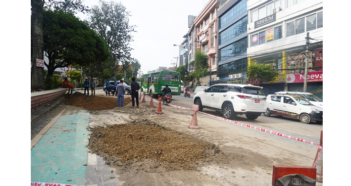 मेलम्ची खानेपानी आयोजनाको पाइप फुटेर सडक भासिएको थियो । शनिबार साँझदेखि काठमाडौँ उपत्यका खानेपानी लिमिटेडले फुटेको पाइप मर्मत थालेसँगै सडक डिभिजन कार्यालय पनि सडक मर्मतमा जुटेको थियो ।