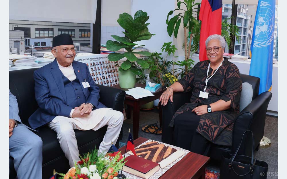 अमेरिका । संयुक्त राष्ट्रसङ्घको ७९औँ महासभामा भाग लिने क्रममा अमेरिकाको न्युयोर्कमा रहेका प्रधानमन्त्री केपी शर्मा ओली र सामोआका प्रधानमन्त्री फैमे नाओमी माताफाबीच आज भेटवार्ता भएको छ ।