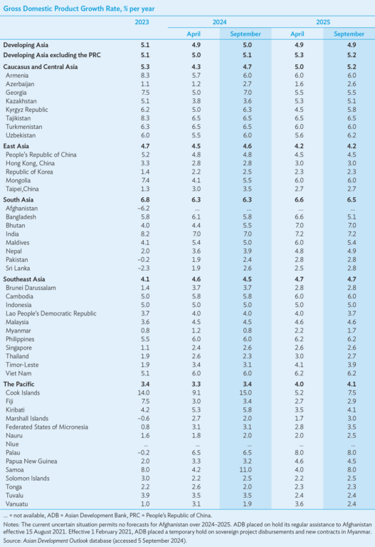 दक्षिण एसियामा सबैभन्दा धेरै भारतको आर्थिक वृद्धिदर सात प्रतिशत रहने प्रक्षेपण एडीबीको छ । सबैभन्दा कम पाकिस्तानको २.४ प्रतिशत रहने अनुमान गरिएको छ ।