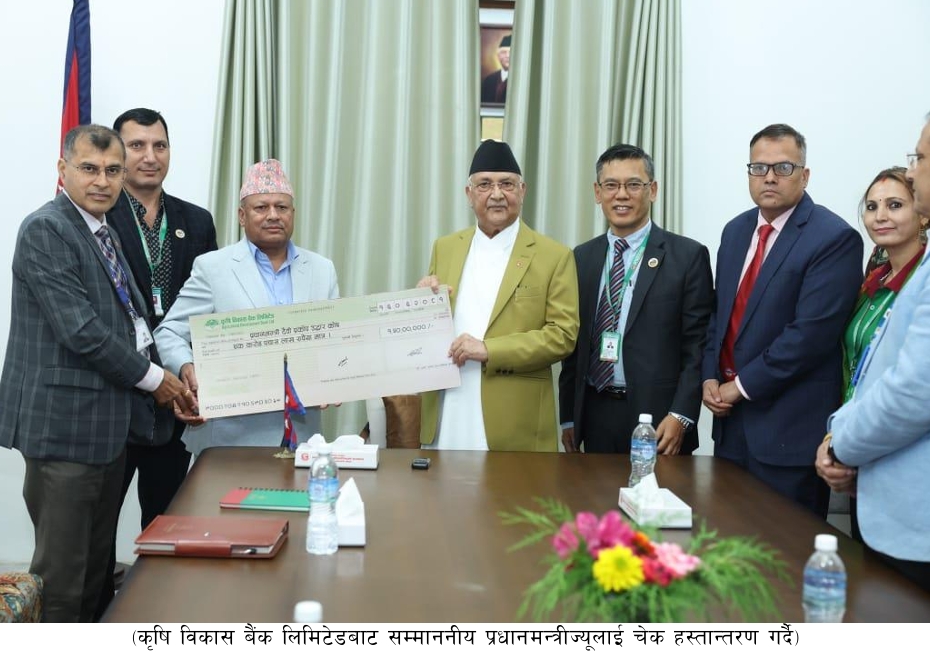 चेक हस्तान्तरण कार्यक्रममा बैंक सञ्चालक समितिका सदस्य एव नेपाल सरकार अर्थ मन्त्रालयका सह–सचिव दीर्घराज मैनाली, बैंकका प्रमुख कार्यकारी अधिकृत गोविन्द गुरुङ, उपमहाप्रबन्धक यज्ञप्रकाश न्यौपाने, विभागीय प्रमुख सरीता दाहाल र वरिष्ठ शाखा प्रमुख ध्रुव पौडेल एवं प्रधानमन्त्री कार्यालयका सचिवालय सदस्यहरुको समेत उपस्थिती रहेको थियो । राष्ट्रलाई परेको संकटको समयमा सहयोग गरेर सामाजिक उत्तरदायित्व निर्वाह गरेको भन्दै प्रधानमन्त्री ओलीले टोलीलाई धन्यवाद दिएका थिए। कृषि विकास बैंक लिमिटेडले यस अघि पनि बिपतको घडिमा संस्थागत सामाजिक उत्तरदायित्व बहन गर्दै आइरहेको छ । प्रधानमन्त्री दैवी प्रकोप उद्धार कोषमा शुक्रबार एकैदिन तीन करोडभन्दा बढी रकम हस्तान्तरण भएको छ ।
