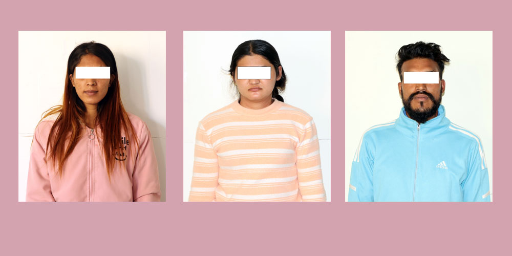 पक्राउ पर्नेमा इलामको माई नगरपालिका–१ घर भई हाल भक्तपुरको मध्यपुर ठिमी नगरपालिका–५ नयाँठिमी बस्ने २५ वर्षीया समृद्धी मगर, काभ्रेको भुम्लु गाउँपालिका–४ कोशीपारी घर भई हाल काठमाडौँ महानगरपालिका–१५ स्वयम्भू बस्ने ३० वर्षीय दिपेन्द्र दर्जी तथा काभ्रेको भुम्लु गाउँपालिका–४ कोशीपारी घर भई हाल हाल भक्तपुरको मध्यपुर ठिमी नगरपालिका–५ नयाँठिमी बस्ने २६ वर्षीय वर्षा दर्जी रहेको काठमाडौँ उपत्यका अपराध अनुसन्धान कार्यालय टेकुका सूचना अधिकारी एवं प्रहरी उपरीक्षक काजीकुमार आचार्यले जानकारी दिए ।