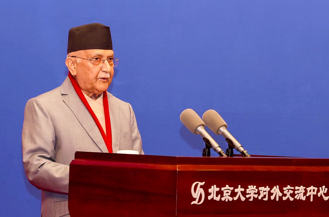 बेइजिङस्थित पेकिङ विश्वविद्यालयमा भएको कार्यक्रममा प्रधानमन्त्री ओलीले नेपालको विकासमा चीनको दरिलो साथ प्राप्त भएको र राष्ट्रपति सी चिनफिङको दुरदर्शी नेतृत्वमा सुरु भएको बीआरआई परियोजनाबाट दुई मुलुकको आपसी सम्बन्ध अझै गाढा हुने विश्वास व्यक्त गरे । प्रधानमन्त्री ओलीले आगामी सन् २०२५ मा नेपाल र चीनबीच कूटनीतिक सम्बन्ध स्थापना भएको ७० वर्ष पुग्ने अवसरमा दुई देशमा उच्चस्तरीय भ्रमण आदानप्रदान भइ पारस्परिक सम्बन्धमा नयाँ आयाम थपिने उल्लेख गरे ।