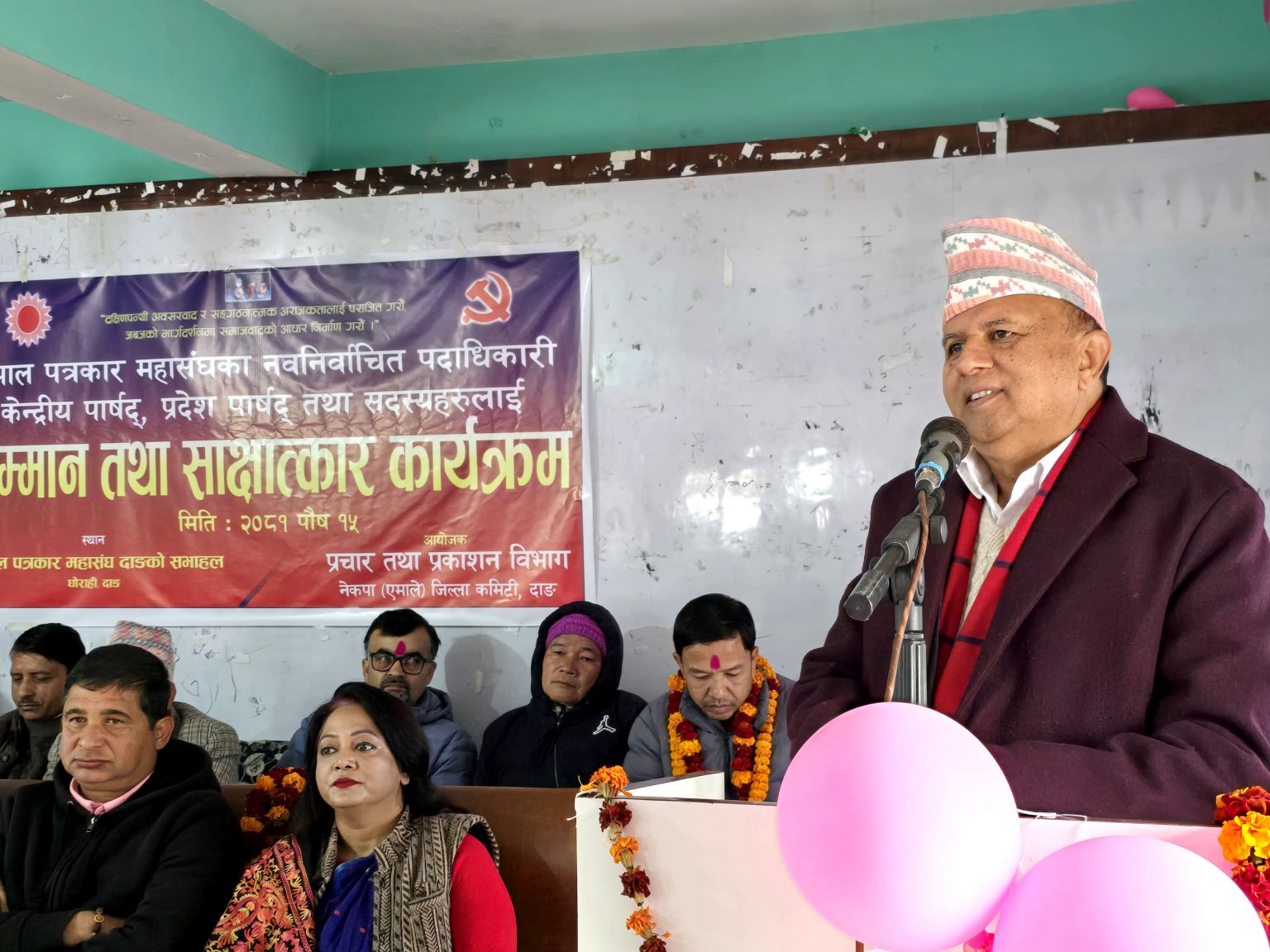 नेकपा एमाले दाङ प्रचार तथा प्रसार विभागले आयोजना गरेको नेपाल पत्रकार महासङ्घमा निर्वाचित कार्यसमितिलाई सम्मान तथा साक्षात्कार कार्यक्रममा बोल्दै महासचिव पोखरेलले संविधान कार्यान्वयनको एक दशकको समीक्षा गरेर अधिकतम सहमतिको आधारमा संविधान संशोधनको प्रक्रिया अघि बढाउने बताए।