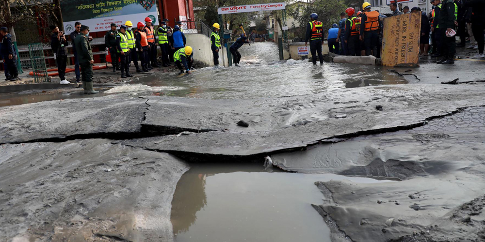 उनले भने, “पाइप फुटेपछि पानी पूरै बगेर बबरमहल जलमग्न भएको थियो । पानी बन्द भएपछि गएरातिबाट हामीले मर्मतको काम सुरु गरेका छौँ । मर्मत सकिएपछि पानी वितरण प्रक्रिया सुरु गर्नेछौँ ।” विद्युतका तारहरु भूमिगत गर्नका लागि ‘होरिजोन्टल ड्रिलिङ’ गर्ने क्रममा बबरमहलमा रहेको खानेपानीको थोक वितरण प्रणालीको पाइप फुटेपछि जलमग्न भएको र विशेष अदालतसहितका सरकारी कार्यालयमा पानी पसेर क्षति गरेको थियो । रासस