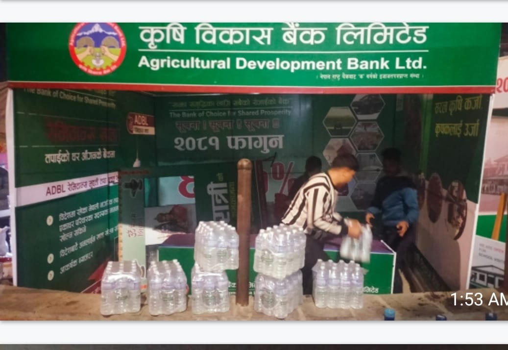 काठमाडौं । कृषि विकास बैंकले पशुपति क्षेत्रमा नि:शुल्क पानी बितरण गरेको छ । बैंकले पशुपतिनाथ मन्दिर दर्शन गर्न आएका भक्तजनहरूको सुविधाका लागि स्टल राखी निःशुल्क खानेपानी वितरण गरेको हो। बैंकले सामाजिक उत्तरदायित्वअन्तर्गत उक्त सेवा प्रदान गरिएको जनाएको छ । मन्दिर दर्शनको लागि लामो समयसम्म लाइनमा बस्दा ब्रतालुहरु शुद्ध पिउनेपानीबाट बन्चित हुन नपरोस् भन्ने हेतुले सेवा प्रदान गरिएको हो ।
