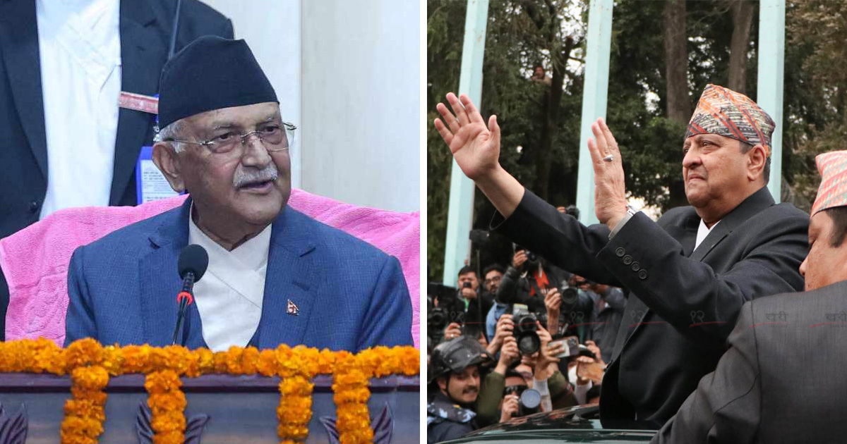 ओलीले आफू कुर्सीमा बसे राष्ट्रपति ुरामचन्द्र पौडेललाई के गर्नुहुन्छु भन्दै पूर्वराजा शाहलाई सोधे । “अनि राष्ट्रपति रामचन्द्र पौडेलजीलाई के गनुहुन्छ उहाँ एउटा कुर्सीमा बसेपछि रु यो देशमा त राष्ट्रपति छ । चुनेको राष्ट्रपति के गर्नुहुन्छ ?,” ओलीको प्रश्न छ ।