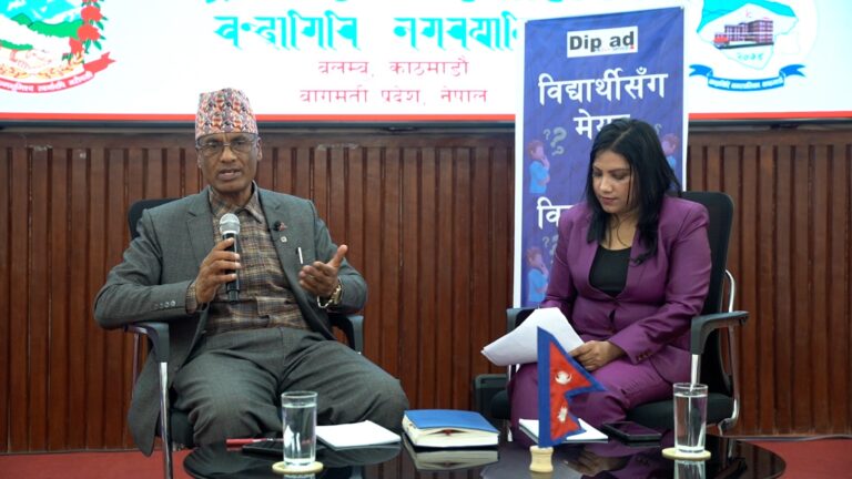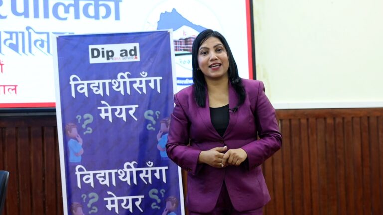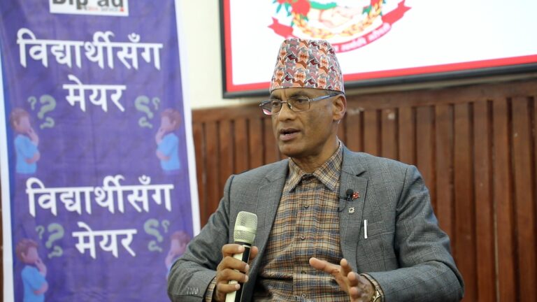 विद्यार्थीको चासो, गुनासो, प्रश्न र उत्तर सहितको कार्यक्रम बिद्यार्थीसँग मेयर थिम राखिएको उक्त टेलिभिजन कार्यक्रमलाई दिप एड मिडिया सर्भिसले उत्पादन गरेको हो । टेलिभिजन प्रस्तोता पुष्पा शर्माले सञ्चालन गरेको उक्त कार्यक्रमलाई राष्ट्रिय टेलिभिजनबाट प्रशारण गरिएको थियो । नेपाल टेलिभिजनको समाचार च्यानलमा गत बुधबार ६ : ३० बजे र बिहिबार दिउँसो पुन : प्रसारण भइसकेको छ । कार्यक्रमलाई नेपाल टेलिभिजनको समाचार च्यानलको फेसबुक पेज र नेपाली इस्यू अनलाइनको युटुब च्यानलबाट पनि हेर्न सकिन्छ ।
