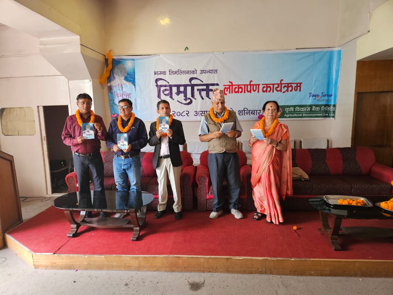 काठमाडौँ । झम्क तिमल्सिनाको उपन्यास विमुक्ति लोकार्पण गरिएको छ । शनिवार एक कार्यक्रमका बिच साहित्यकार भुवनहरि सिग्देल, कथाकार माया ठकुरी, समालोचक द्वय डा.अशोक थापा र महेश पौड्यालले संयुक्त रुपमा उक्त कृतिको लोकार्पण गरेका हुन् । ।