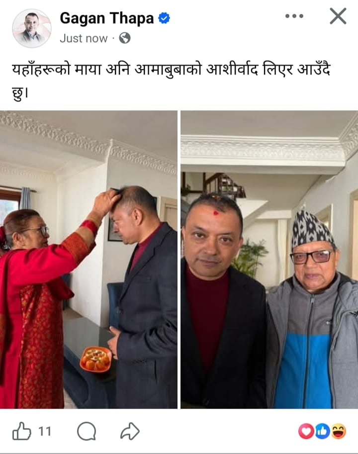 काठमाडौं । नेपाली कांग्रेसका महामन्त्री गगनकुमार थापा दोस्रो विशेष महाधिवेशन स्थलमा आउन लागेका छन् । भृकुटीमण्डपमा उद्घाटन हुन लागेको दोस्रो विशेष महाधिबेशनमा सहभागि हुन निवासबाट महामन्त्री थापा हिडेका हुन । सामाजिक सञ्जालमा महामन्त्री थापाले वुवा र आमाको आर्शीवाद लिएर आउदै गरेको जानकारी दिएका हुन । उनले लेखेका छन् यहाँहरुको माया अनि आमाबुवाको आशीर्वाद लिएर आउँदैछु । कांग्रेसको दोस्रो विशेष महाधिवेशनको उद्घाटन केहीबेरमा हुँदैछ । अहिले विभिन्न स्थानबाट झाकी सहितका र्याली भृकुटीमण्डमा प्रवेश गरिरहेका छन् ।