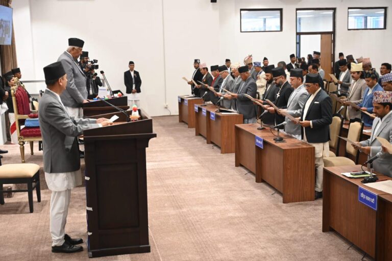 काठमाडौँ । प्रतिनिधिसभाका नवनिर्वाचित सदस्यहरुले आज पद तथा गोपनीयताको शपथ लिएका छन् ।