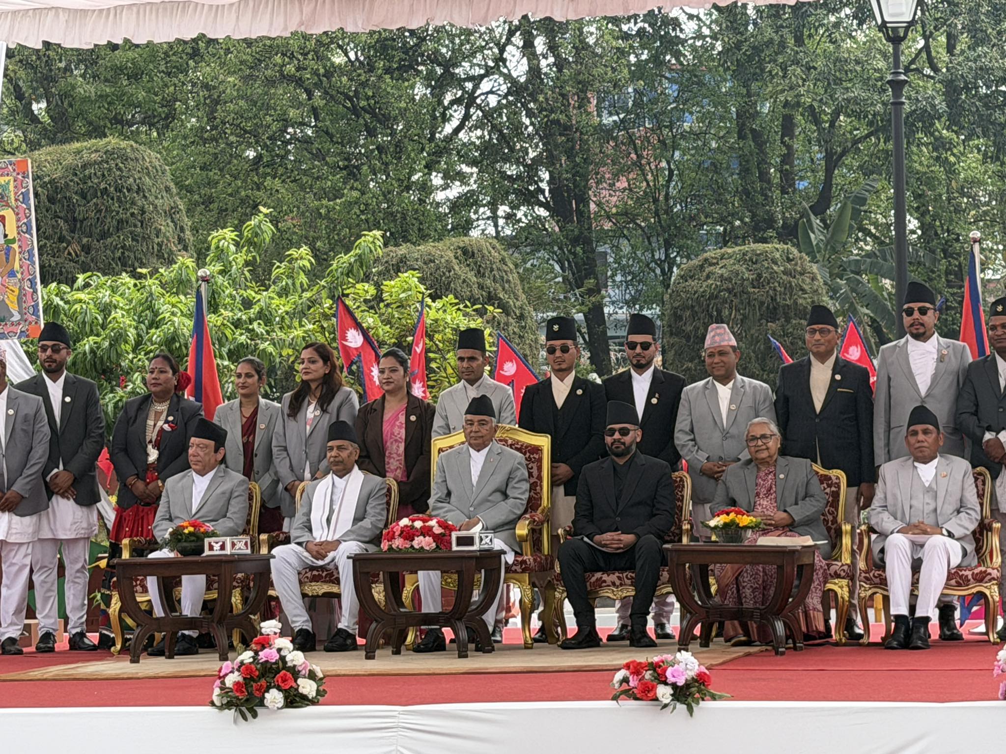 समारोहमा उपराष्ट्रपति रामसहायप्रसाद यादव, निवर्तमान प्रधानमन्त्री सुशीला कार्की, प्रधानन्यायाधीश प्रकाशमानसिंह राउत, राष्ट्रियसभाका अध्यक्ष नारायणप्रसाद दाहाल उपस्थित हुनुहुन्थ्यो । समारोहमा पूर्वप्रधानमन्त्री, मन्त्रिपरिषद्का पूर्वअध्यक्ष, संवैधानिक निकायका प्रमुख, सरकारका विशिष्ट श्रेणीका अधिकृत, सुरक्षा निकायका प्रमुख, यहाँस्थित विभिन्न कूटनीतिक नियोगका पदाधिकारीलगायत उपस्थित हुनुहुन्थ्यो ।