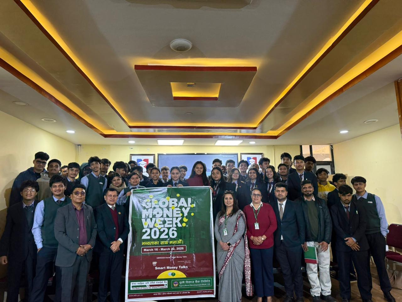 काठमाडौं । कृषि विकास बैंक लिमिटेडले ‘ग्लोबल मनि विक अभियान,२०२६’अन्तर्गत १५ सयभन्दा बढी विद्यार्थी तथा महिला कृषि व्यवसायीहरुलाई वित्तीय साक्षरता प्रदान गरेको छ । यही मार्च १६ देखि २२ सम्म सञ्चालन भएको अभियानमार्फत सात वटै प्रदेशका १५०० भन्दा बढी विद्यार्थी तथा महिला कृषि व्यवसायीहरुलाई वित्तीय साक्षरता प्रदान गरिएको बैंकले जनाएको छ ।