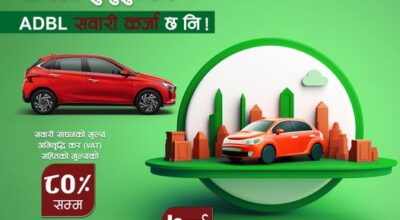 काठमाडौँ । राष्ट्रिय वाणिज्य बैङ्क लिमिटेडले नजिकिँदै गरेको नेपालीहरूको महान् चाडपर्व उत्सव योजना अन्तर्गत ७.७७ प्रतिशत स्थिर ब्याजदरमा निजी सवारी (रातो प्लेट) प्रयोजनको लागि चाडपर्व विशेषमा गाडी कर्जा योजना ल्याएको छ ।मासिक किस्ताबन्दीमा कर्जा भुक्तानी गर्ने गरी बैङ्कले अधिकतम एक करोड रुपियाँसम्म कर्जा लगानी गर्नेछ । कर्जा रकमको ०.५० प्रतिशत सेवा शुल्क लाग्नेछ । गाडीको…