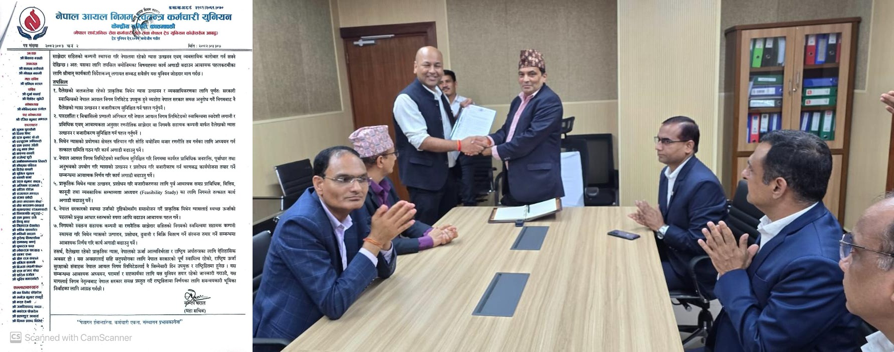 काठमाडौँ । दैलेखमा मिथेन ग्यासको व्यावसायिक उत्पादनमा आयल निगमको स्वामित्व लिने पहल गर्नको लागि कर्मचारी युनियनले ब्यवस्थापनलाई ध्यानाकर्षणपत्र बुझाएका छन् ।मंगलबार नेपाल आयल निगम स्वतन्त्र कर्मचारी युनियनले कार्यकारी निर्देशक चण्डिकाप्रसाद भट्टलाई सात बुँदे मागसहित ध्यानाकर्षणपत्र बुझाएको हो । मुख्य रुपमा दैलेखमा मिथेन ग्यासको व्यावसायिक उत्पादनमा आयल निगमको स्वामित्व सुनिश्चित गर्न पहल गर्न भनिएको छ ।…