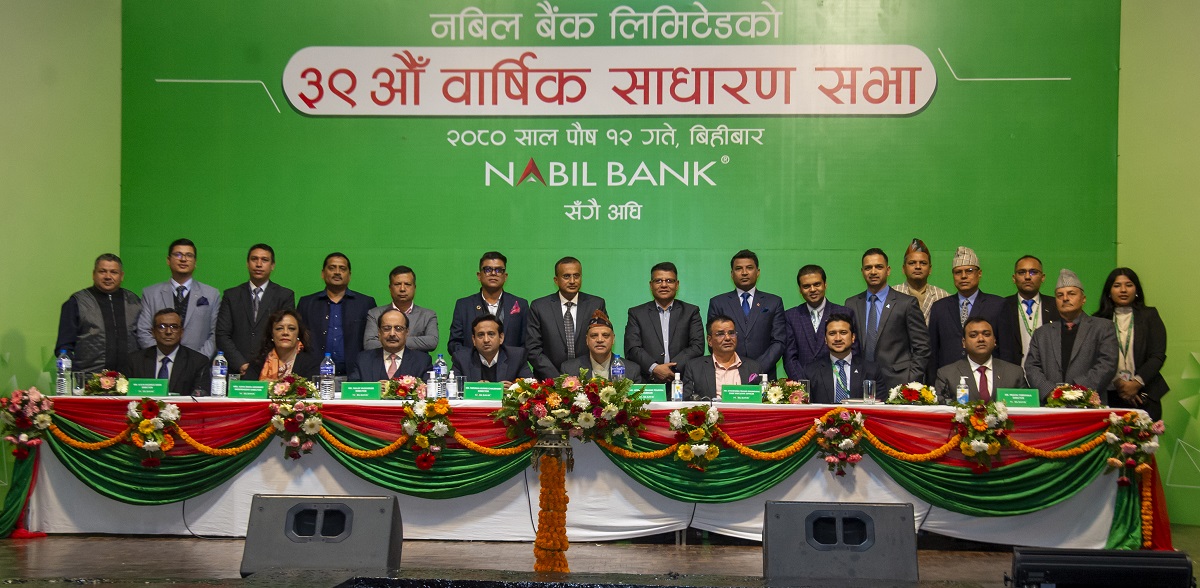 काठमाडौं । नबिल बैंक ३९ औं वार्षिक साधारण सभा सम्पन्न गरेको छ। बैंक सञ्चालक समितिका अध्यक्ष उपेन्द्र प्रसाद पौड्यालको अध्यक्षतामा बिहीबार वार्षिक साधारण सभा सम्पन्न गरिएको हो। सभाले बैंकको सञ्चालक समितिले सिफारिस गरे बमोजिम तथा नेपाल राष्ट्र बैंकको स्वीकृति अनुसार आर्थिक वर्ष २०७९र८० को मुनाफाबाट सेयरधनीहरूलाई ११ प्रतिशत नगद लाभांश वितरण गर्ने प्रस्ताव पारित गरेको…
