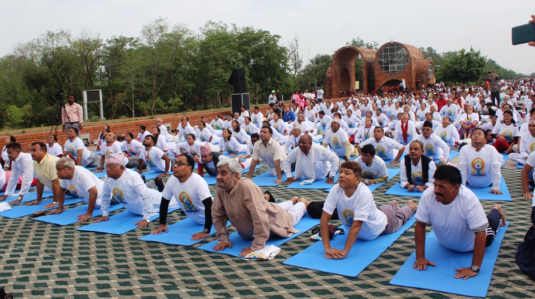 भारतीय दूतावासको आयोजनामा लुम्बिनीमा योगाभ्यास