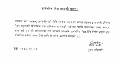 रसुवा। जनैपूर्णिमाका अवसरमा गोसाइँकुण्डमा स्नान एवं पूजाआजा गर्ने भक्तजनको आज बिहानैदेखि घुइँचो लागेको छ । समुद्र सतहदेखि १४ हजार एक सय फिट उचाइमा सो अवस्थित पवित्र तीर्थस्थल छ । आज बिहान सबेरैदेखि कुण्डमा स्नानको एवं पूजाआजा गर्ने भक्तजनको घुइँचो लागेको गोसाइँकुण्ड क्षेत्र विकास समितिले जनाएको छ । जनैपूर्णिमाकोे दिन पूजाआजा गर्नाले सम्पूर्ण देवताको दर्शन पाई…