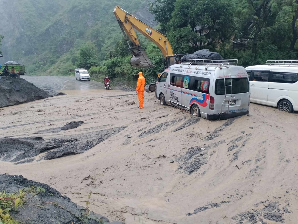 पहिरोले बिपी राजमार्गका विभिन्न तीन स्थानमा यातायात अवरुद्ध