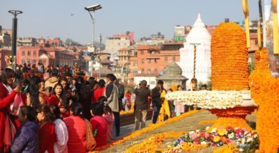 काठमाडौँ । महाशिवरात्रिका अवसरमा आज चार लाख बढी भक्तजनले पशुपतिनाथको दर्शन एवम् पूजाअर्चना गरेका छन् । बिहान २ बजेदेखि नै पाशुपत क्षेत्रमा दर्शनार्थीको घुइँचो लागेको छ । अहिलेसम्म पशुपतिनाथमा कम्तीमा पनि चार लाखभन्दा बढी भक्तजनले दर्शन गरेका पशुपति क्षेत्र विकास कोषका प्रवक्ता रेवतीरमण अधिकारीले जानकारी दिए । बिहानभन्दा अहिले दर्शनार्थीको भीड बाक्लिँदै गएको छ ।…