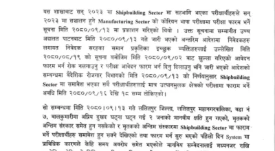 काठमाडौँ । जिल्ला अदालत काठमाडौँले सुन तस्करी प्रकरणमा पक्राउ परेका आठजनालाई पुर्पक्षका लागि थुनामा पठाउने आदेश दिएको छ । न्यायाधीश शङ्करबहादुर राईको इजलासले निजहरूलाई पुर्पक्षका लागि थुनामा पठाउन आदेश दिएको हो । उक्त प्रकरणमा संलग्न रहेको भनिएका दुईजना अझै फरार छन् । दुबईबाट १४ किलो सुन लिएर आएका गोरखाका चन्द्र घलेलाई पक्राउ गरेपछि तस्करीबारे थप…