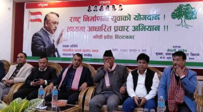रुपन्देही । नेपाली काँग्रेसका सभापति शेरबहादुर देउवाले पार्टीभित्रको मतभेद हटाउनुपर्ने बताएका छन् । उनले पार्टी भित्रको मतभेद हटाएर काँग्रेसलाई जीवन्त भाइब्रेण्ट डेमोक्रेटिक पार्टीको रूपमा अगाडि बढाउनुपर्ने बताए । । काँग्रेस प्रतिनिधि सभा क्षेत्रीय सभापति तथा क्षेत्रीय प्रशिक्षण शाखा प्रमुखको प्रशिक्षण तथा अभिमुखीकरण कार्यक्रमको सोमबार रुपन्देहीको भैरहवामा उद्घाटन गर्दै सभापति देउवाले काँग्रेसलाई अझै ठुलो पार्टी बनाउने…