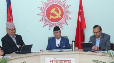 काठमाडौँ । नेपाल कम्युनिष्ट पार्टी (नेकपा) एमालेको सचिवालय बैठक सुरु भएको छ । बैठकमा समसामयिक राजनीतिक, बाढीपहिरो र डुबानमा परेकाको उद्धार तथा राहत र प्रधानमन्त्रीले हालै सम्पन्न गरेको अमेरिका भ्रमणलगायतका विषयमा छलफल हुने नेकपा एमाले कार्यालय सचिव डाक्टर भीष्म अधिकारीले जानकारी दिए ।