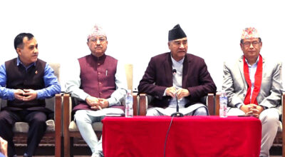 काठमाडौं । नेपाली कांग्रेसका महामन्त्री गगनकुमार थापाले यस अघि पटकपटक मन्त्री बनिसकेकाहरूलाई अबको मन्त्रिमण्डलमा पठाउन नहुने बताएका छन् । आज आज सुनसरीको इटहरीमा पुगेका उनले अब बन्ने कांग्रेस–एमाले सरकारमा यसअघि नै पटकपटक अवसर पाइसकेकाहरूलाई विश्राम दिनुपर्ने बताए । पार्टीले निर्णय गरेर मन्त्री पठाउँदा समावेशीतालाई उच्च प्रथाामिकता दिनुपर्ने उनको भनाइ छ । उनले दलित, मधेसी महिलालगायत…