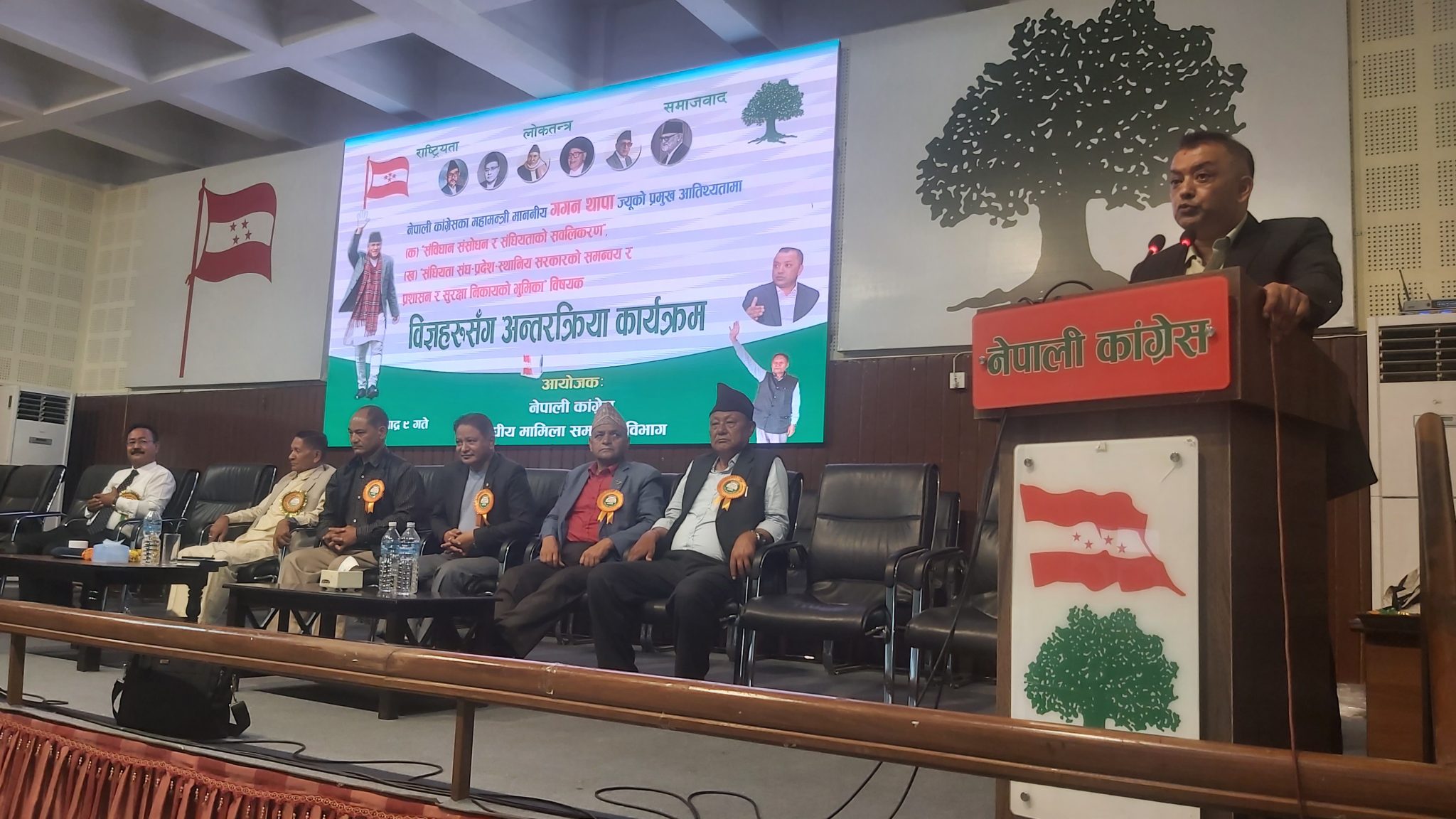 पाटन । नेपाली कांग्रेसका महामन्त्री गगनकुमार थापाले सङ्घीयतालाई वित्तीय र प्रशासनिक रुपमा प्रभावकारी बनाउनुपर्नेमा जोड दिएका छन् ।नेपाली कांग्रेसको सङ्घीय मामिला समन्वय विभागद्वारा पार्टीको केन्द्रीय कार्यालय सानेपामा आयोजित ‘संविधान संशोधन र सङ्घीयताको सबलीकरण, सङ्घ प्रदेश स्थानीय सरकारको समन्वय, प्रशासन र सुरक्षा निकायको भूमिका’ विषयक अन्तरक्रियामा उनले सङ्घीयतालाई जनभावना अनुरुप प्रभावकारी बनाउनुपर्ने बताए ।“जति अप्ठ्यारो भए…