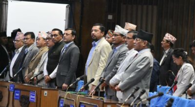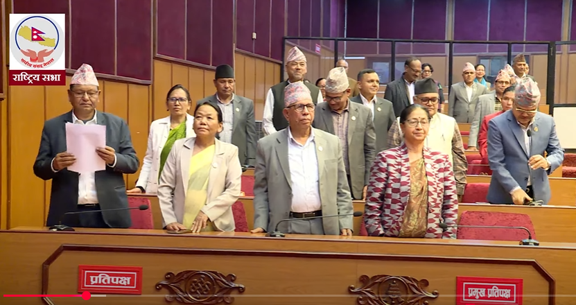 काठमाडौँ । सङ्घीय संसद्को बैठक विपक्षी दलको विरोधकाकारण आज पनि कार्यसूचीमा प्रवेश गर्न सकेन । राष्ट्रियसभाको बैठक सुरु भए लगत्तै विपक्षी दलका सांसदहरुले उभिएर विरोध जनाए । राष्ट्रियसभाको बैठकमा नेपाल कम्युनिष्ट पार्टी ९एकीकृत समाज०का सांसद डा वेदुराम भुसालले कुलमान घिसिङलाई नेपाल विद्युत् प्राधिकरणका कार्यकारी निर्देशक पदबाट हटाउनुको कारणबारे सरकारले जवाफ दिनुपर्ने बताउनुभयो । “यो मन्त्रिपरिषद्को…